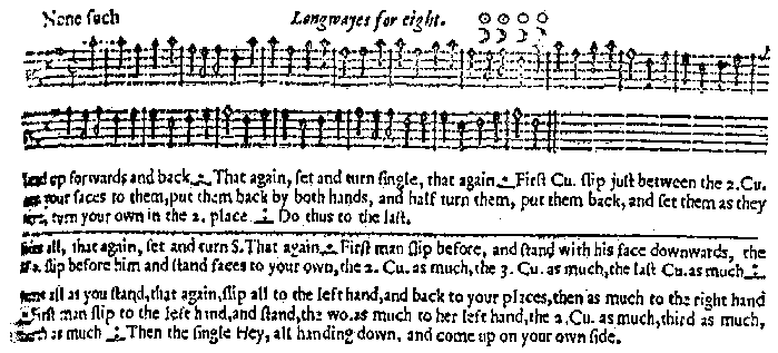 - In the Introduction section of the Country Dance Book Part 2, Cecil Sharp uses Nonesuch as part of the evidence for his (then) interpretation of the term "siding". However, it is his interpretation rather than the original dance instruction that supports what he says. In fact the interpretation makes the siding figure shorter in order to accommodate a mis-interpretation of the second chorus. The result supports his original siding hypothesis but is not supported by the original instruction! NOTE: By the 1920's, Sharp had decided that his interpretation of siding was wrong and that now referred to as "straight/oblique/Shaw" was more likely to be correct. His efforts to get his interpretation changed were thwarted by the English Folk Dance Society (which he had of course created!)